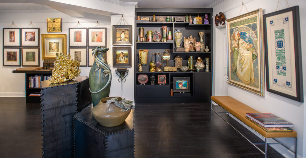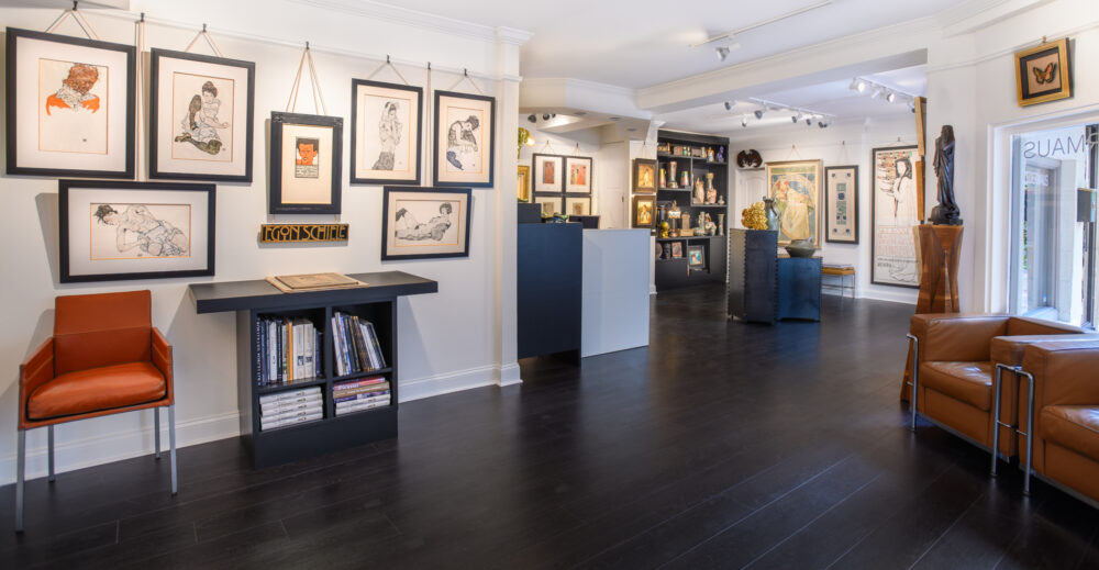 Established in 1999, Galerie Fledermaus specializes in Symbolist and Secessionist fine and decorative art, as well as contemporary works that echo the spirit of those movements. In addition to original works, the gallery is proud to present one of the largest national collections of Secessionist prints and turn-of-the-century decorative arts. Rare original prints, produced by Gustav Klimt and Egon Schiele, are presented alongside the work of their peers, such as Henri de Toulouse-Lautrec, Alphonse Mucha, and Koloman Moser; and in the spirt of “Gesamtkunstwerk” (total art), period objects by Zsolnay, Massier, and Amphora complete an immersive experience of fin-de-siecle beauty.
