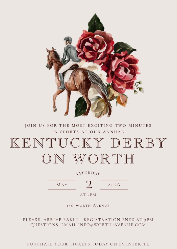 Join us for shopping, sips and lite bites as you stroll Worth Avenue in your best Derby attire!