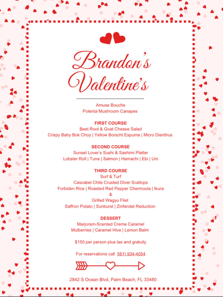 Brandon’s Valentine’s Menu | Tideline Resort Palm Beach & Spa